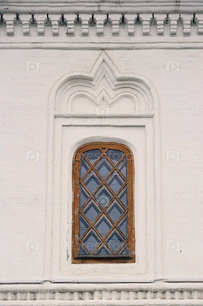 Архитектурный элемент — старинное окно в церкви в Ярославле