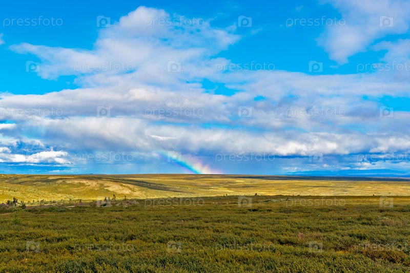 Северная тундра и небо с облаками в летний день