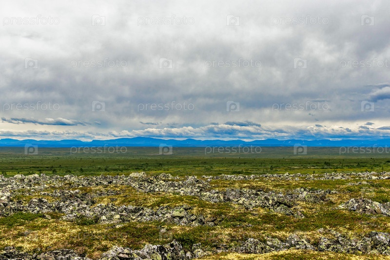 Северная тундра и горный массив в летний день