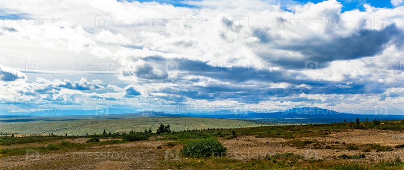 Северная тундра и горный массив в летний день