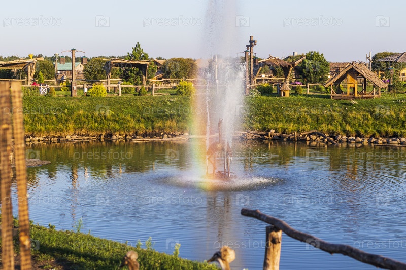 Вид красивого пруда в деревне. На открытом воздухе