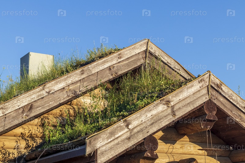 Снимок крыши старой хижины в деревне с выращенными на ней сорняками. Деревенский