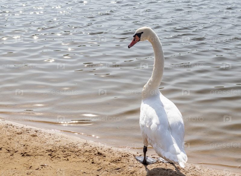 Крупный план лебедей, уток, лебедей у пруда. Пернатый