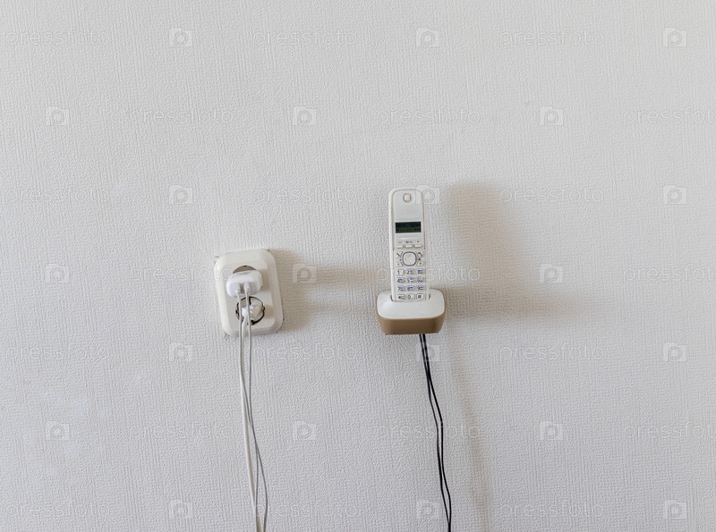 Дальний план электрического выключателя и телефона в квартире. Концепция
