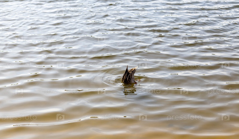 Ныряют утки в пруду