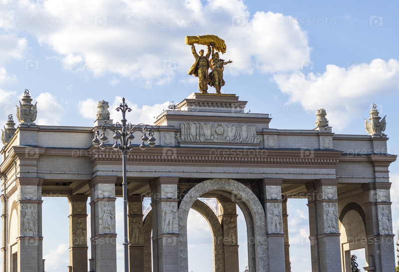 Москва, Россия - 07.09.2023 - Снимок главного входа на площадку Выставки достижений народного хозяйства, известной как ВДНХ. Ориентир