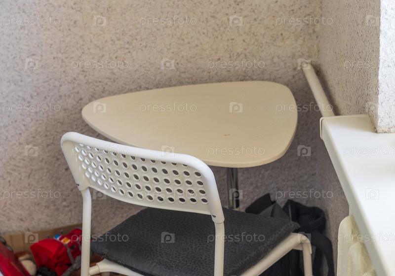Снимок небольшого углового стола со стулом в комнате. Интерьер