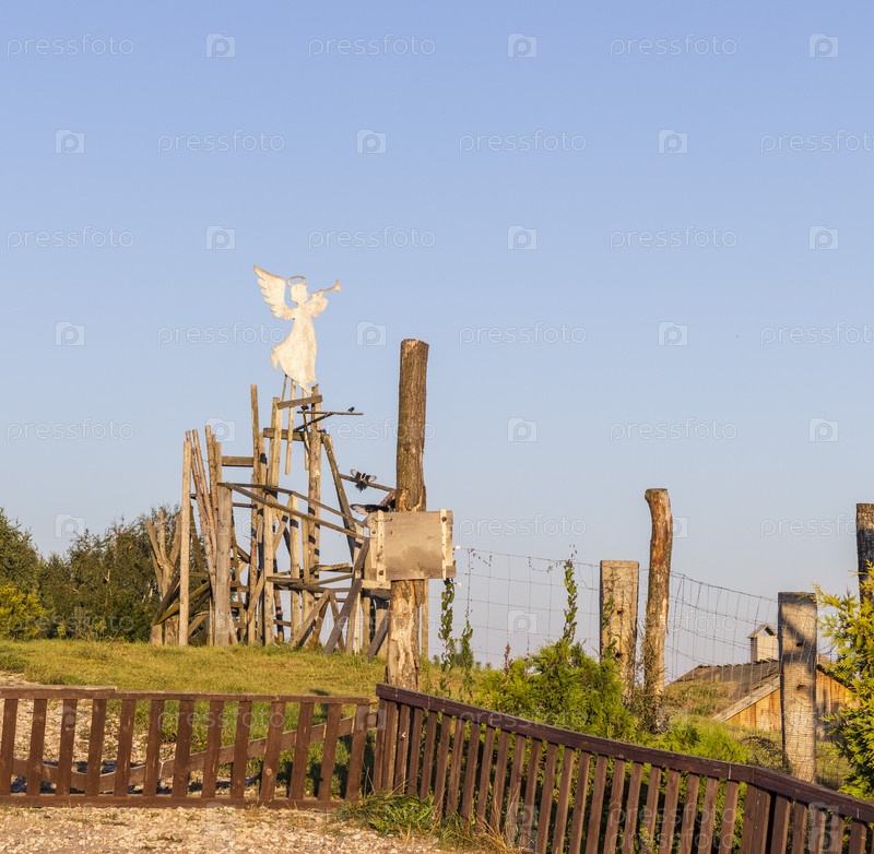 Снимок улицы деревни с праздничными украшениями. На открытом воздухе
