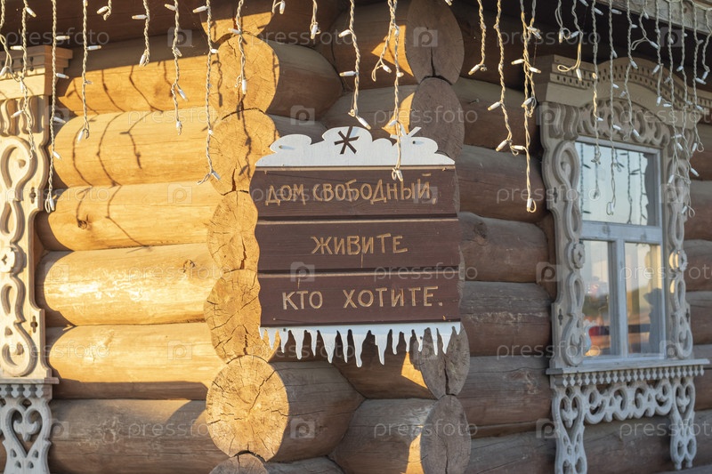 Снимок улицы в деревне в Беларуси с праздничными украшениями. Открытый