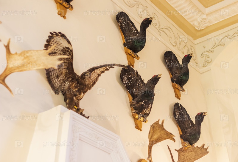 Снимок охотничьих трофеев на стене комнаты, Декор