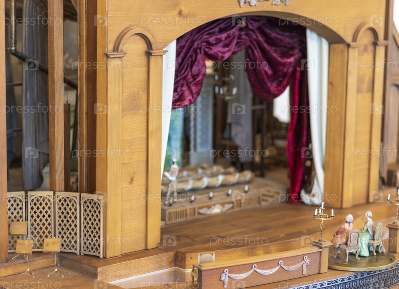 Снимок старого старинного миниатюрного деревянного театра. Развлечение
