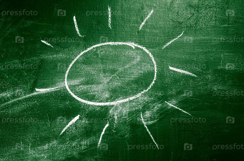 Нарисованное мелом солнце на доске