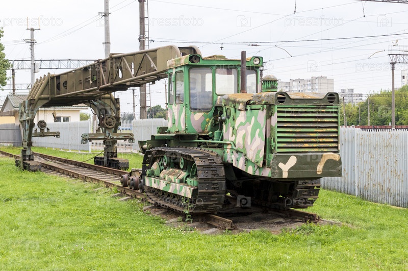 Вид старинных старых строительных поездов. транспорт