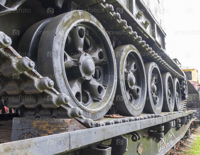 Крупным планом непрерывный путь танка. Военный