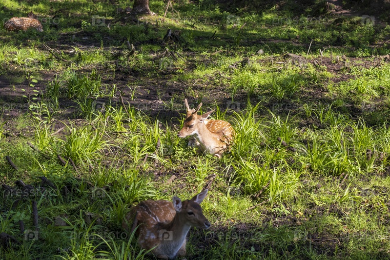 Вид оленей в лесу. Животные