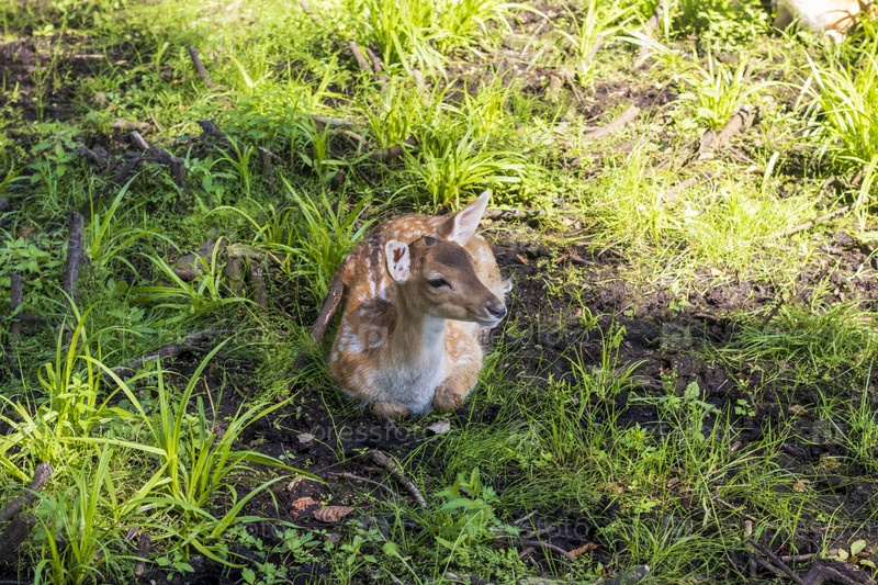 Вид оленей в лесу. Животные