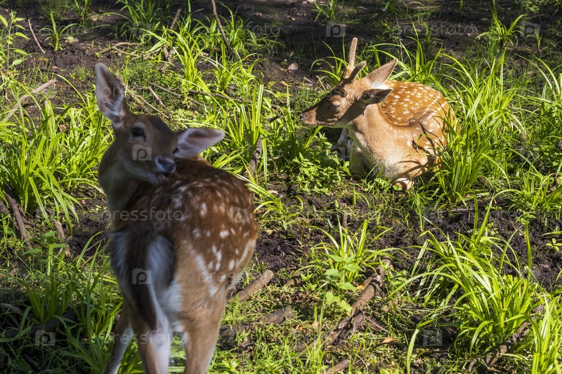 Вид оленей в лесу. Животные