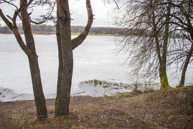 Пейзажная съемка озера в холодное время года. Природа