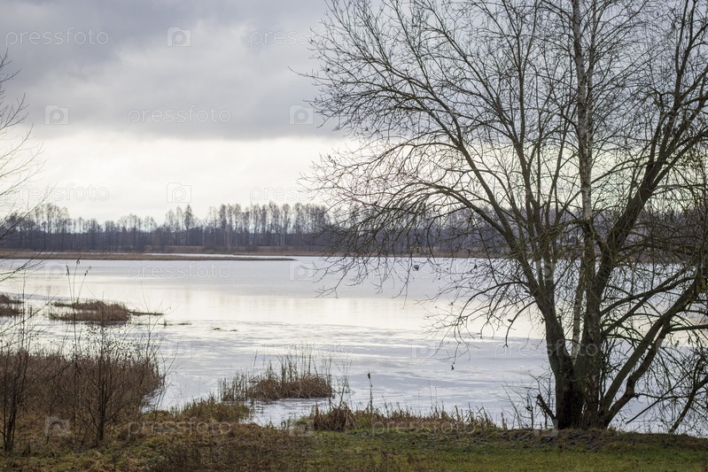 Пейзажная съемка озера в холодное время года. Природа