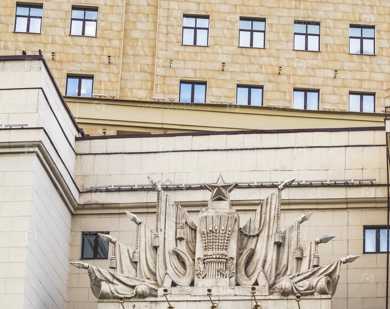 Фасад здания с гербами советской эпохи. История