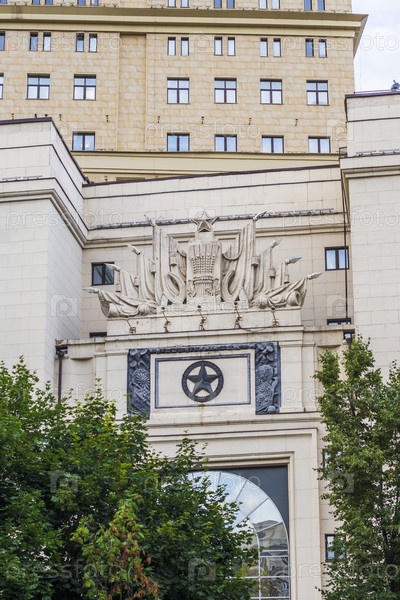 Фасад здания с гербами советской эпохи. История