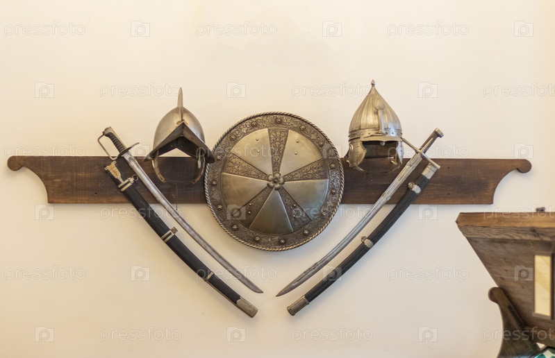 Крупный план старых старинных доспехов, выставленных на выставке в музее. История