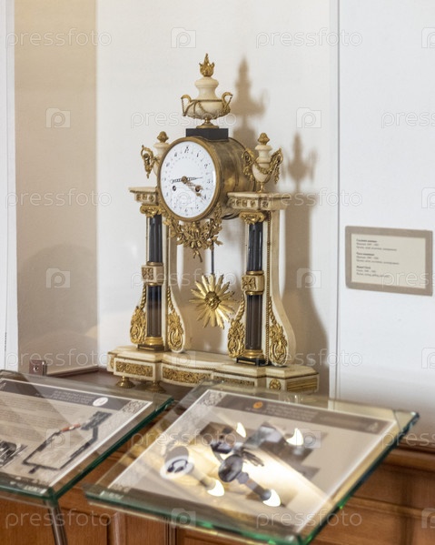 Несвиж, Беларусь - 23.08.2023 - Крупный план старинных часов на выставке музея замка Радзвиллов. История