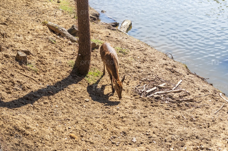 Вид оленей в лесу. Животные