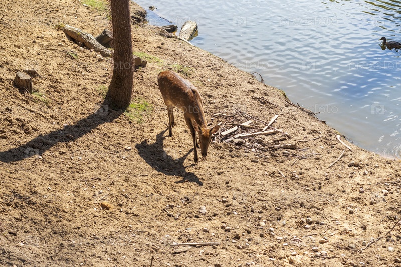 Вид оленей в лесу. Животные