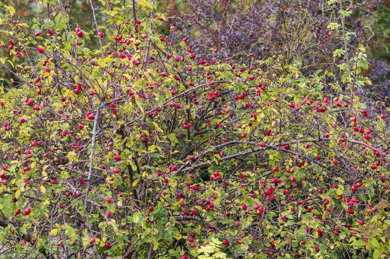 Крупный план кустов шиповника. Природа