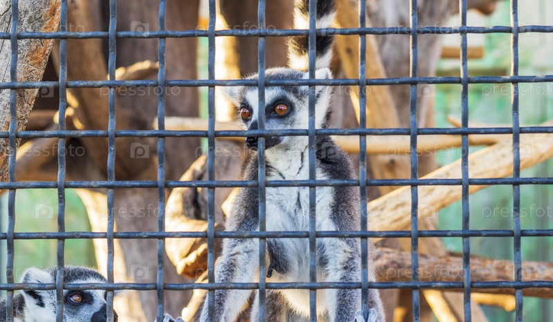 Крупный план лемура в клетке в зоопарке. Животное