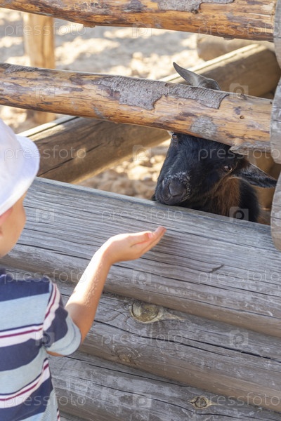 Кадр маленького мальчика, кормящего козу