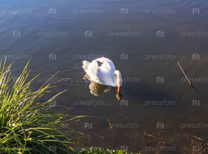 Вид лебедя на озере. Природа