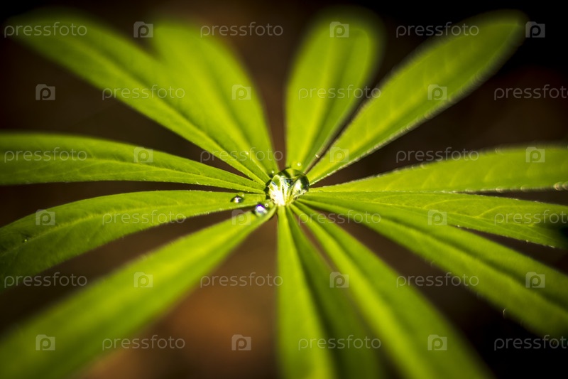 Крупный план росы на листьях в лесу. Природа