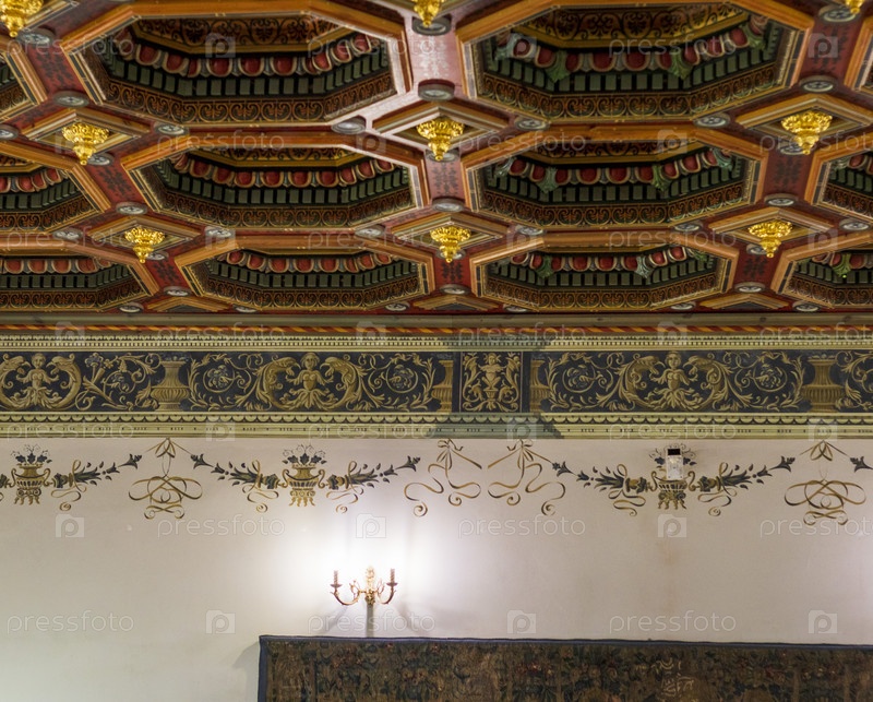 Мир, Беларусь - 10.03.2023 - Снимок одной из комнат внутри Мирского замкового комплекса. Ориентир