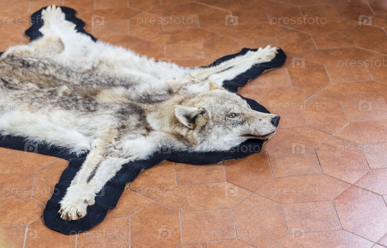 Снимок шкуры волка в охотничьем доме дома. Охота