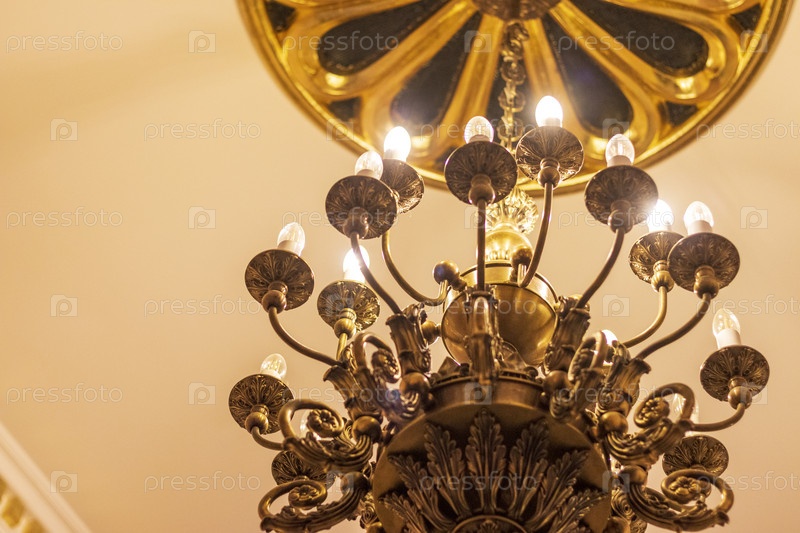 Крупный план декоративных стен, потолка и люстры. Интерьер