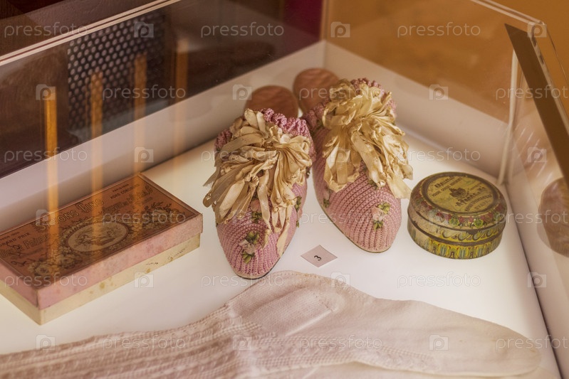 Коссово, Беларусь - 30.10.2023 - Крупным планом старинные предметы, выставленные в музее во дворце Пусловских. История