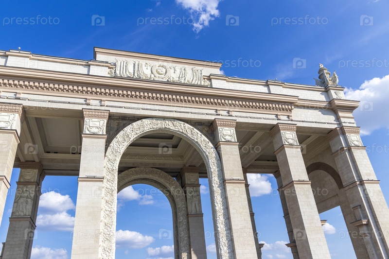 Москва, Россия - 07.09.2023 - Снимок главного входа на площадку Выставки достижений народного хозяйства, известной как ВДНХ. Ориентир