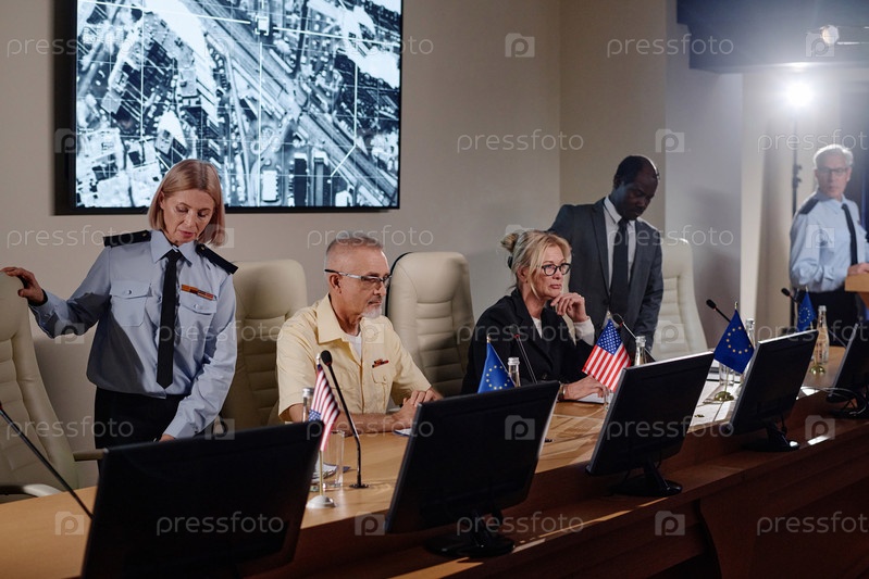 Политики, сидящие на деловой конференции