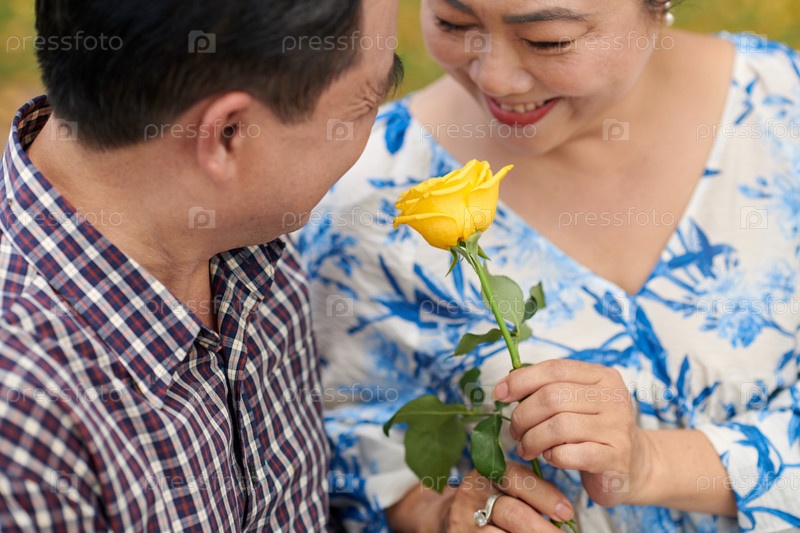 Пожилая азиатская пара, влюбленная