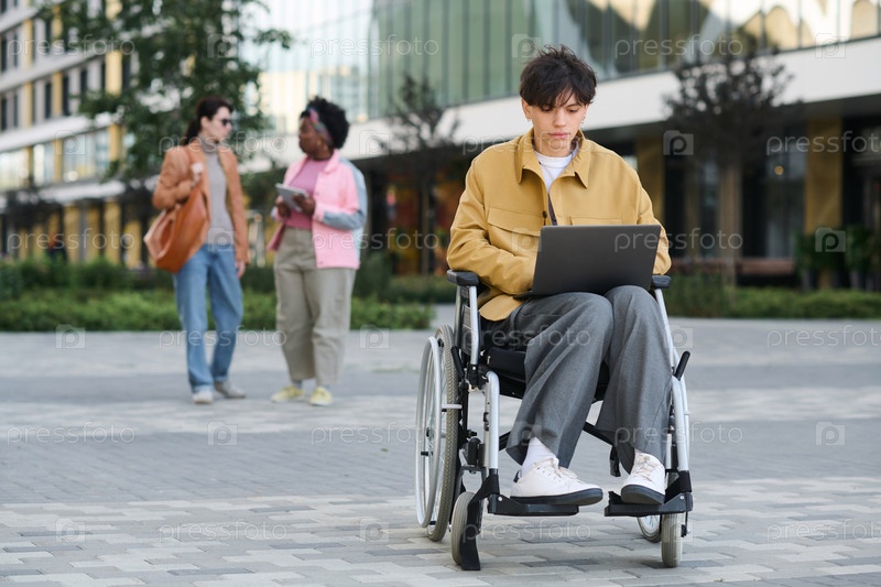 Мужчина с ограниченными возможностями, использующий ноутбук