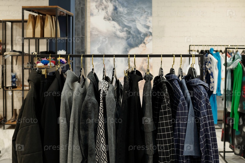 Длинная стойка с новой сезонной коллекцией пальто и свитеров