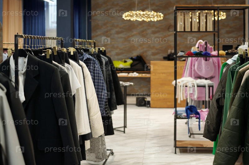 Интерьер бутика или шоу-рума с новой коллекцией сезонной моды