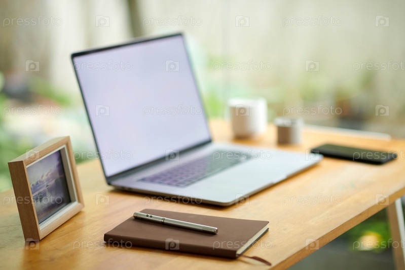 Планировщик и ручка рядом с ноутбуком на рабочем столе