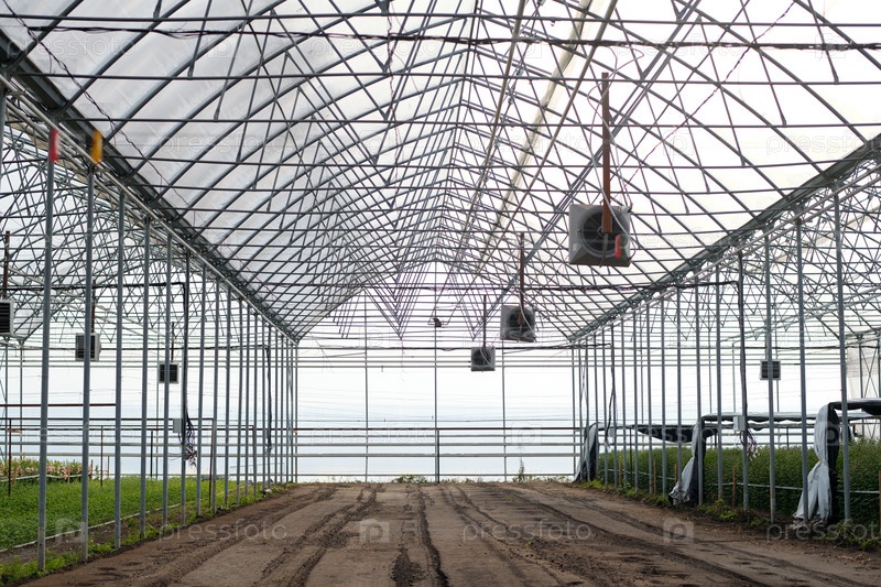 Часть просторной современной промышленной теплицы с зелеными растениями