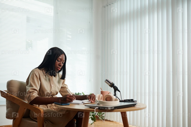 Женщина, работающая над сценарием подкаста