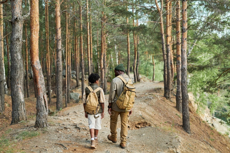 Папа гуляет со своим сыном на свежем воздухе