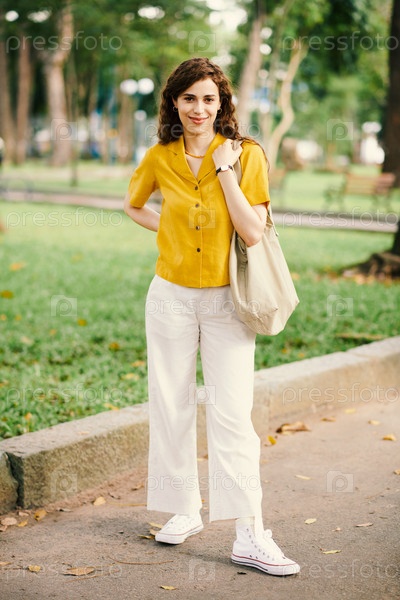 Молодая женщина гуляет в парке