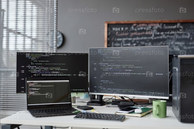 Рабочее место программиста с компьютерами в офисе